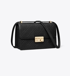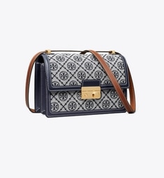 T MONOGRAM SUEDE SHOULDER BAG