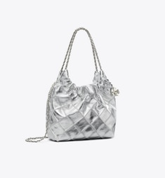 - Double chain and leather interwoven handles with 7.1" (18cm) drop; chain and leather interwoven crossbody strap with 22.2" (56.5cm) drop