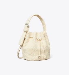 T MONOGRAM PEBBLED MINI BUCKET BAG