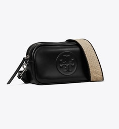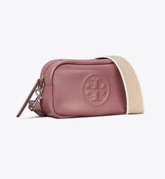 From our signature collection. The Mini Miller Crossbody Bag is new in soft, smooth leather with a gentle drape. Designed with two zippered compartments and an embossed Double T. Wear it with or without the removable webbing strap.