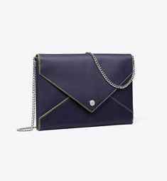 T MONOGRAM SUEDE ENVELOPE CHAIN POUCH