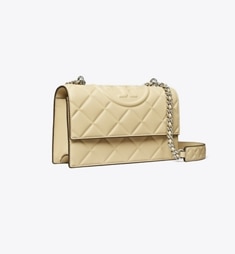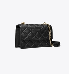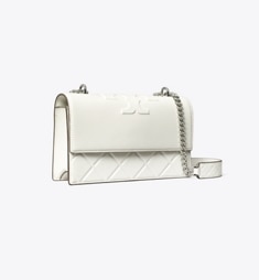 - Convertible chain shoulder strap with 22.2" (56.5cm) drop; leather shoulder guard for comfort