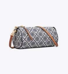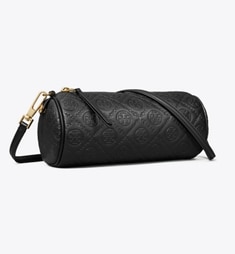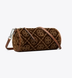 T MONOGRAM DENIM EMBELLISHED CYLINDER BAG