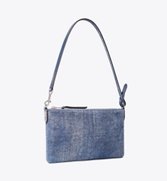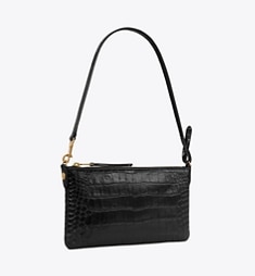 - Leather shoulder strap with 9.5" (24cm) drop; converts into a wristlet strap