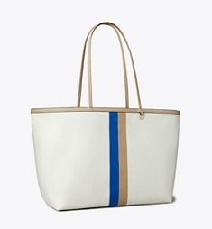 Named for the bold, sporty stripes of race cars, the Racer Tote is lightweight and durable, crafted in water-resistant coated canvas. A go-to for comm…