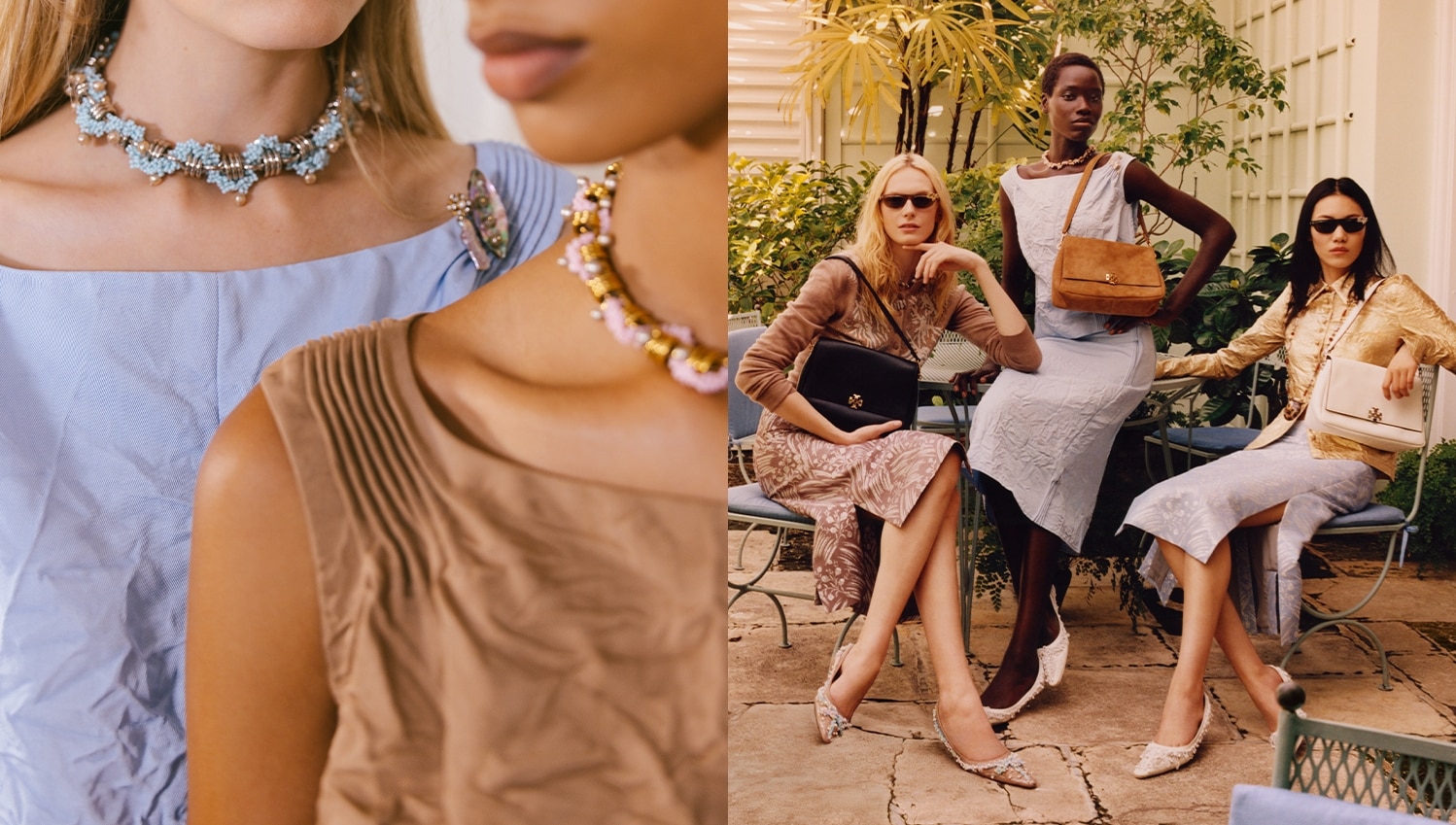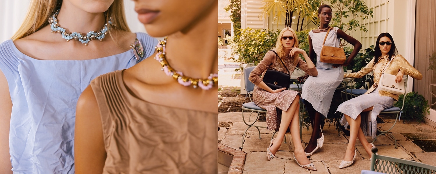 Delicate seed bead embroidery echoes the floral clusters of our glass and resin choker