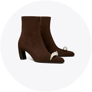 Timeless silhouettes are revisited and updated with distinctive details and beautiful craftsmanship. Hand-stitching, traditional finishing and intricate embellishment make each style stand out. Unique textures add dimension and interest, from bold embossed leather and textured suede to graphic pieced colorblocking and embroidery. Woven leather and basketweave is inspired by Tory's longtime fascination with basketry. Straw baskets in her Valley Forge home, woven bags found on travels and the caning of Parisian café chairs. We bring back favorite styles each season as our signature collections evolve.