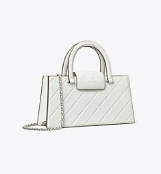 - Anses de 8 cm ; bandoulière amovible et réglable en chaîne et cuir entrelacés de 45 cm